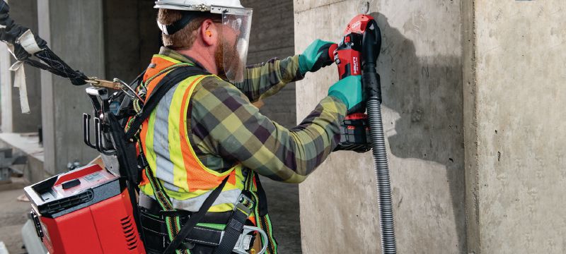 - Aspiración de polvo conforme a la tabla 1 de la norma 1926.1153 de la OSHA: nivel de aspiración de 140 CFM y filtros HEPA (opcionales) para cumplir la mayoría de las normas sobre polvo de sílice de la OSHA