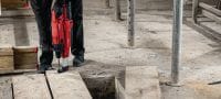- Perforación y cincelado prácticamente libres de polvo con los martillos perforadores a batería TE 5-22 (profundidad de perforación máx. de 135 mm)