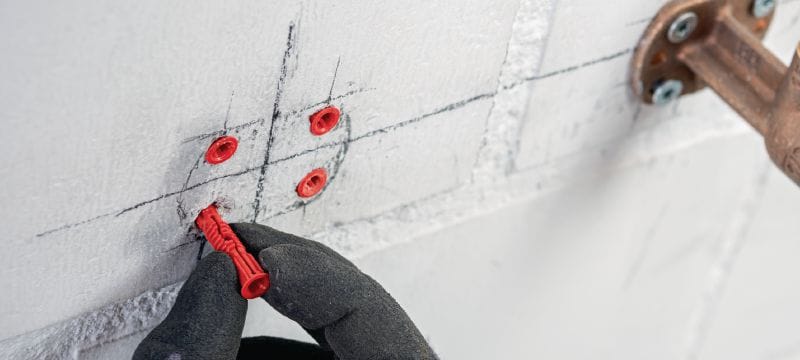 - Versátil: puede usar el mismo anclaje plástico para fijar a una gran variedad de materiales base: concreto, ladrillo macizo, ladrillo hueco, concreto celular (gaseado), tabique seco