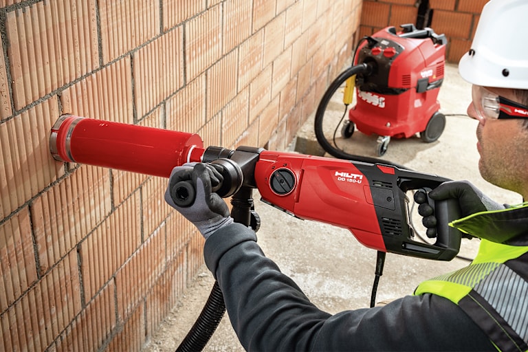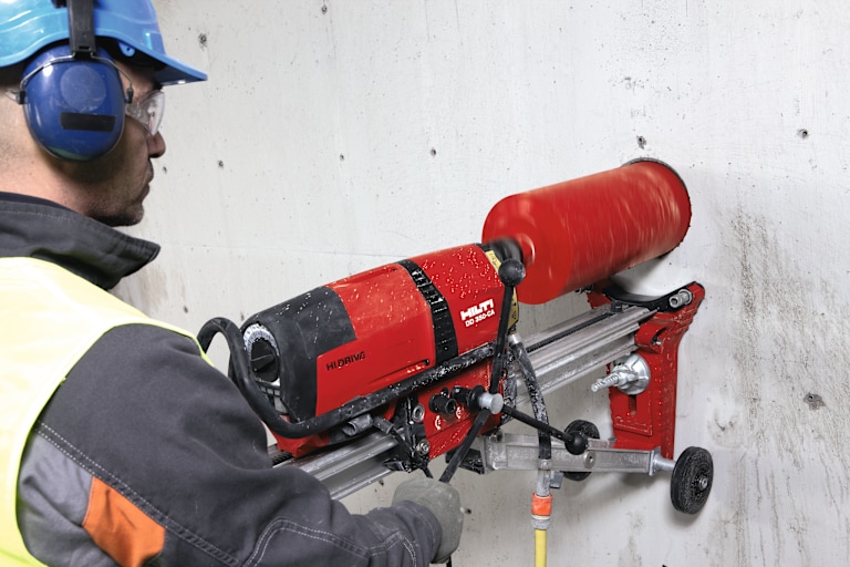Nuestro sistema de alto rendimiento se basa en un potente taladro con corona de diamante , combinado con una broca corona Hilti.