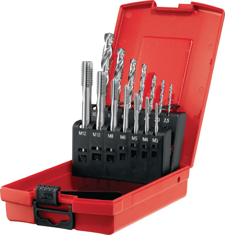 Juego de brocas de perforación para vástago cuadrado para cortar roscas en acero secundario ≤700 N/mm², roscas conforme a DIN 371