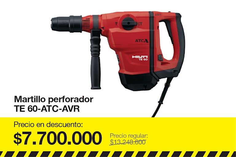 Incluye: 1x Martillo combinado TE 60-ATC/AVR 120V, 1x Cable de red 120V 4m, 1x Maletín TE 60-ATC/AVR cpl, 1x Hilti Grease 50ml
